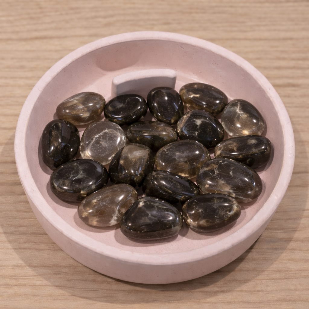Descripción: Cuarzo de tono ahumado que ayuda a bajar revoluciones y “aterrizar” la mente en el presente.