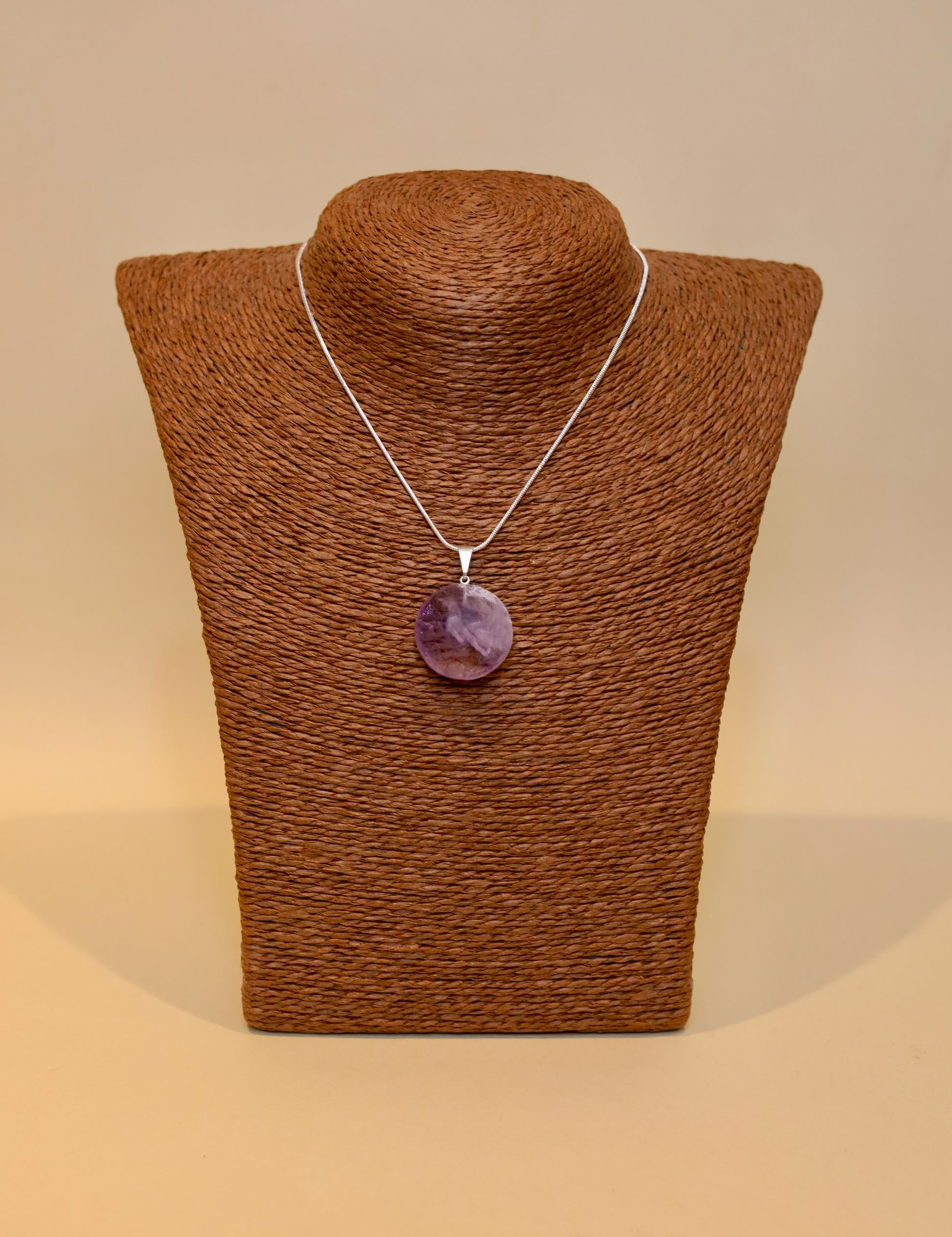 💜 Descripción: Dije Full Moon de Amatista, una pieza mística que refleja la energía de la luna llena y la sabiduría espiritual de la amatista. Su tono violeta profundo transmite calma, equilibrio y protección energética.