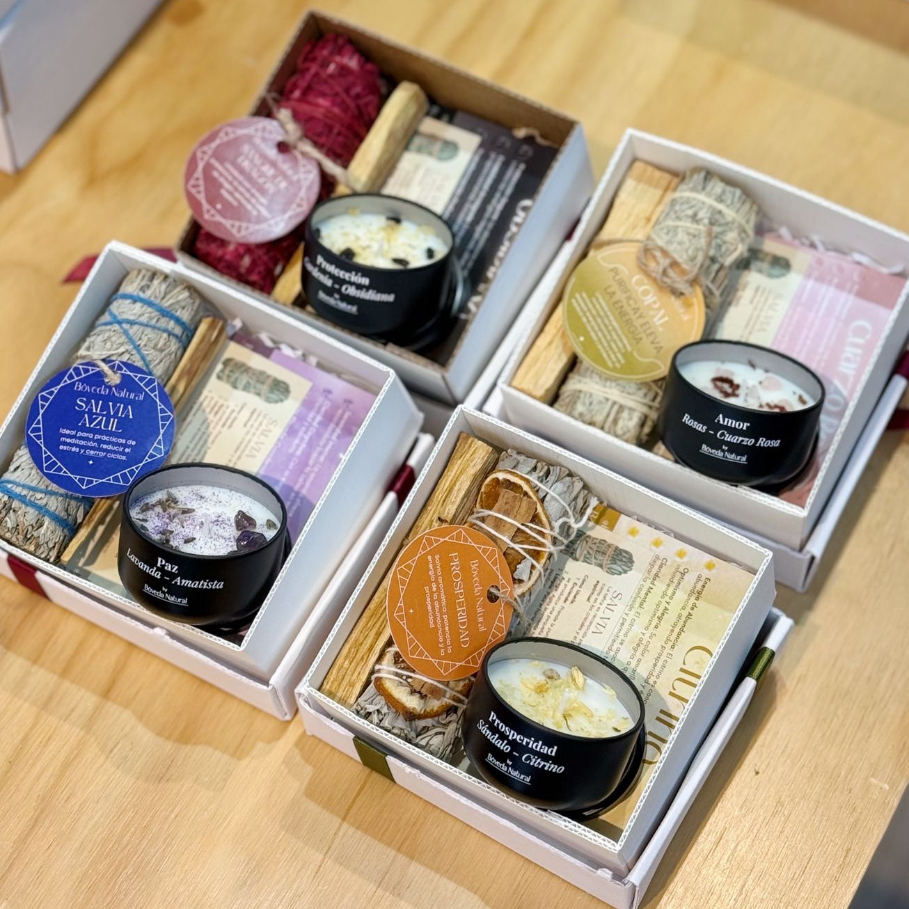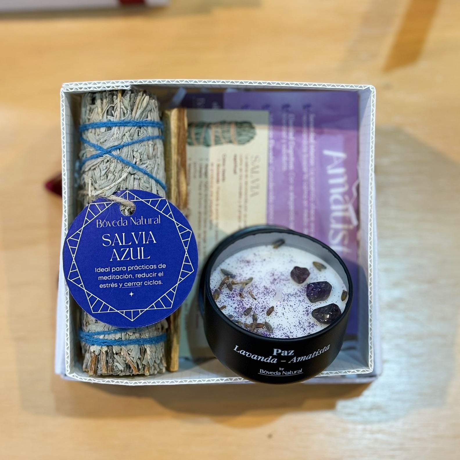 Un regalo creado para vivir un ritual completo según el propósito que elijas. Incluye una vela de intención con cristal (que puedes conservar como amuleto al terminar la vela), la tarjeta informativa del cristal, palo santo y una salvia intencionada para ese tipo de ritual, más una guía de uso paso a paso. Todo viene en caja de regalo, lista para entregar.