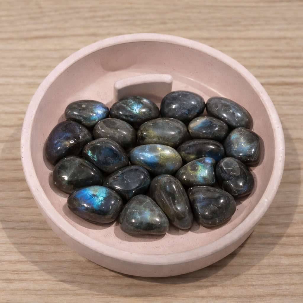 Descripción: Destellos (“labradorescencia”) que inspiran escucha interna y protección sutil.
