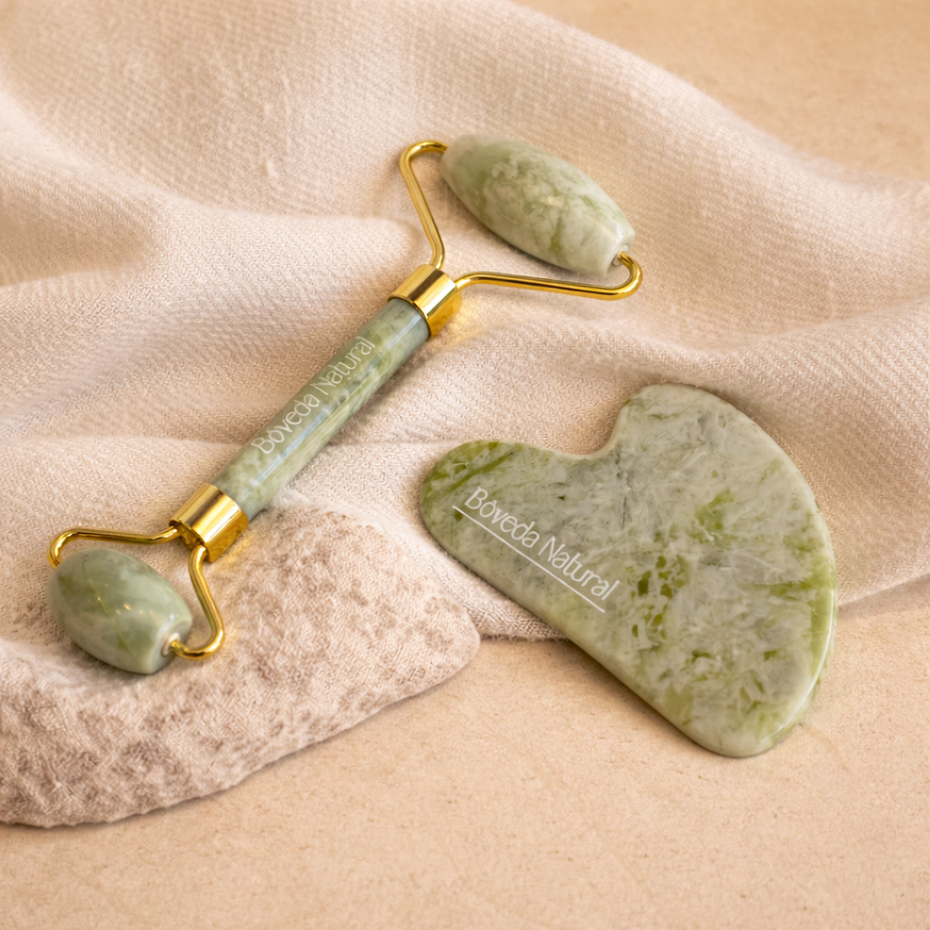 💎 Detalle: Elaborados con jade natural, cada pieza es única en tono y vetas. El rodillo ofrece un masaje calmante y refrescante, mientras la gua sha define los contornos del rostro, potenciando la belleza natural desde adentro.